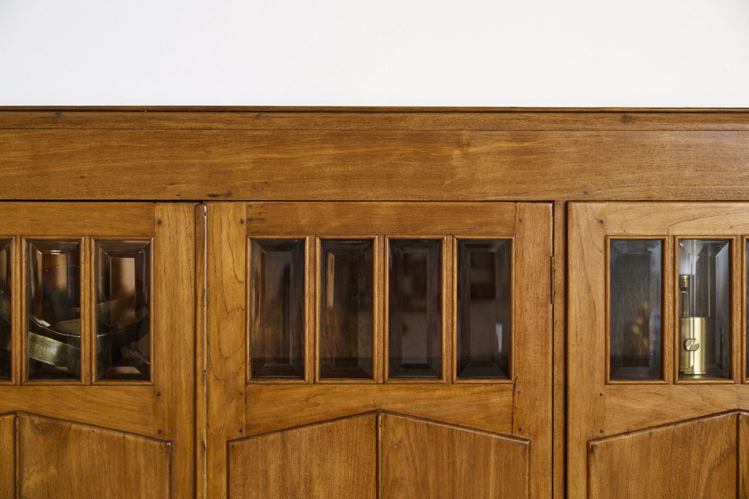 A stunning embodiment of the Art Deco era’s clean lines and elegant geometry, this display cabinet is a timeless piece of functional artistry. Crafted from solid aged teak, its warm tones and rich grain bring a natural sophistication to the bold, symmetrical design.