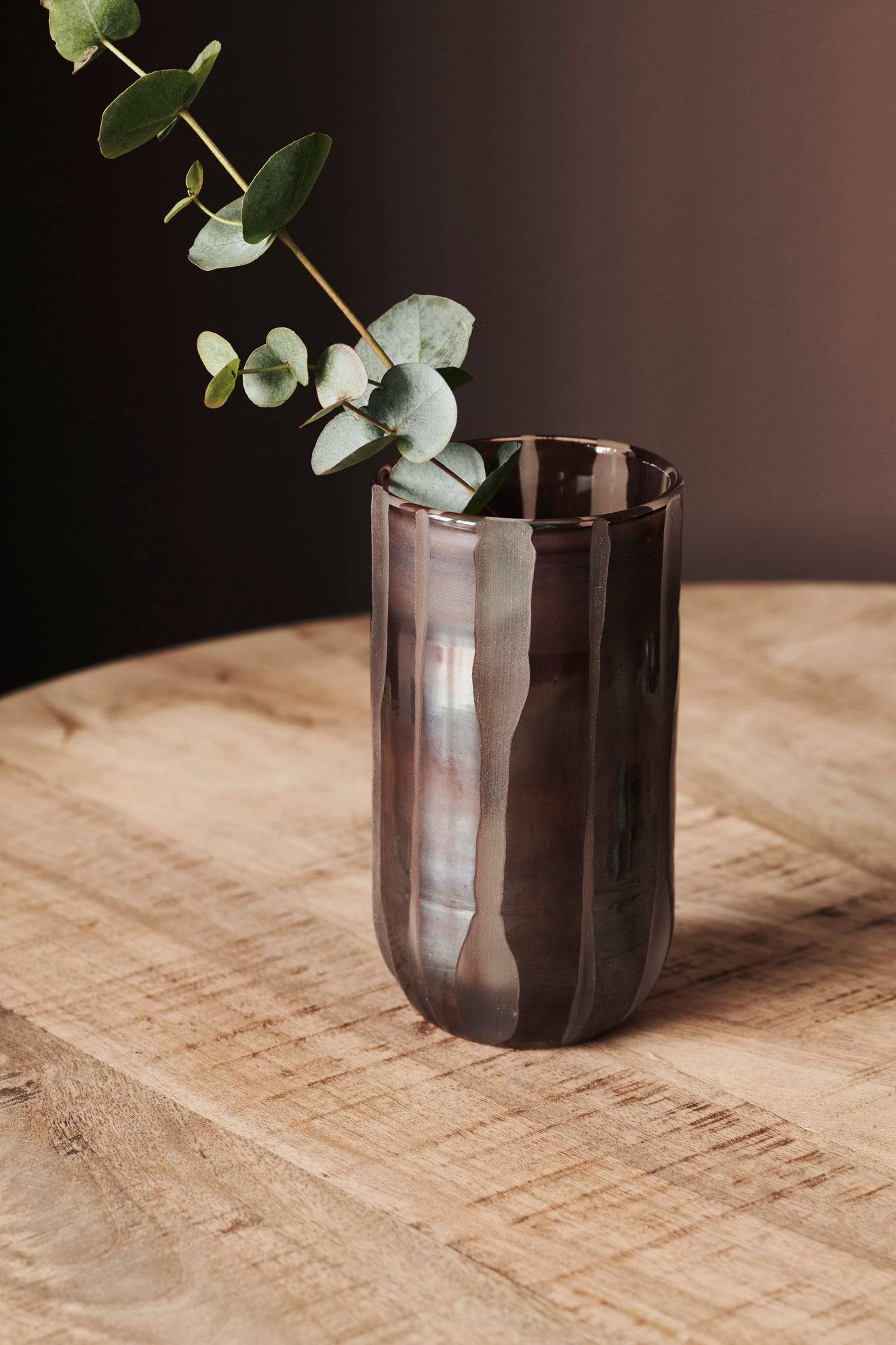 A vase is an easy and quick update to your home décor. This brown Bai glass vase from House Doctor comes with an intriguing detail. The glaze has been removed in wide grooves, leaving frosted vertical stripes along with the brown glaze. Use the vase on its own or in combination with the Bai tea light holder in the same colour. It will also look great together with vases and knick-knack in other materials. Perhaps kept in the same tone of colour? The options are many with this design.