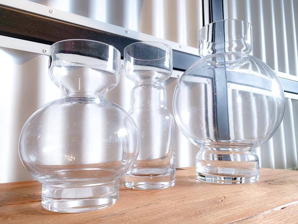 The vase is made of glass, and has a nice, transparent look giving the vase a simple, balanced appeal. The vase’s organic shape also adds a gorgeous, natural elegance to the home, and it is therefore the perfect detail on the dining room table or on the windowsill.