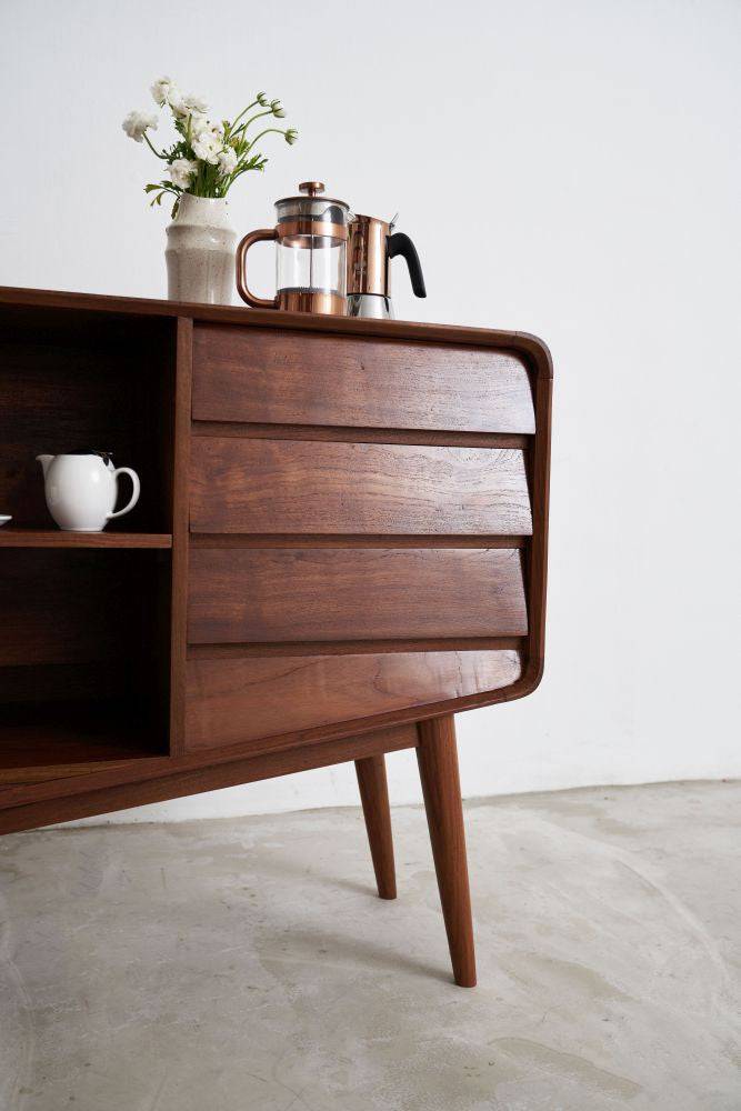 The Slanted Sideboard is a vintage-inspired reproduction based on a bestselling #journeyeastvintage piece. It’s crafted using traditional carpentry methods and old Teak wood, ensuring each piece has unique wood characteristics.