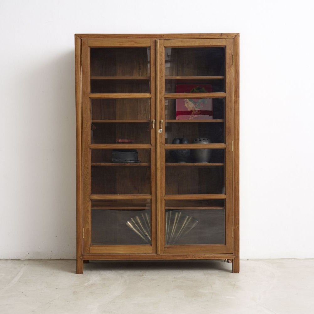 Use it to showcase a curated collection of art, ceramics, or glassware behind its glass doors, allowing its contents to be part of the visual narrative of the room.
