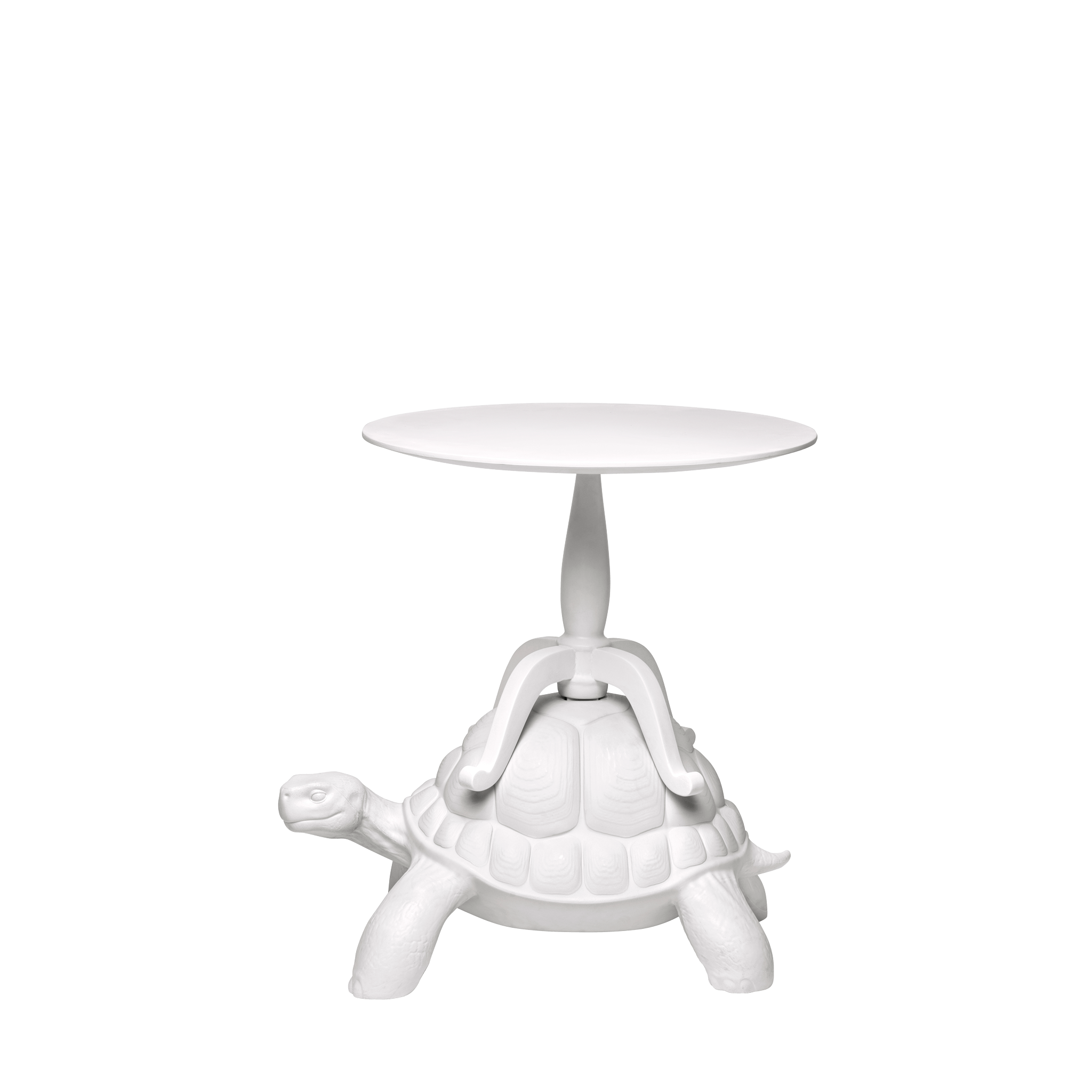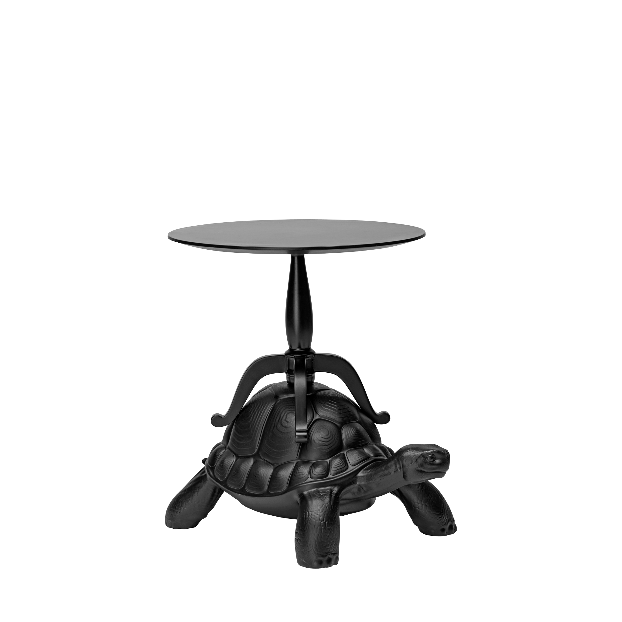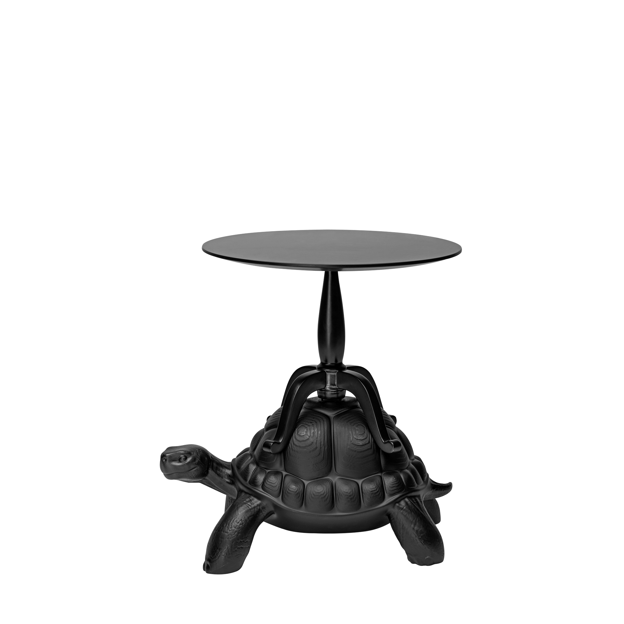 Turtle Carry Coffee Table designed by Marcantonio, carries on its carapace a wooden coffee table firmly anchored to its base. For your cups of coffee and more!