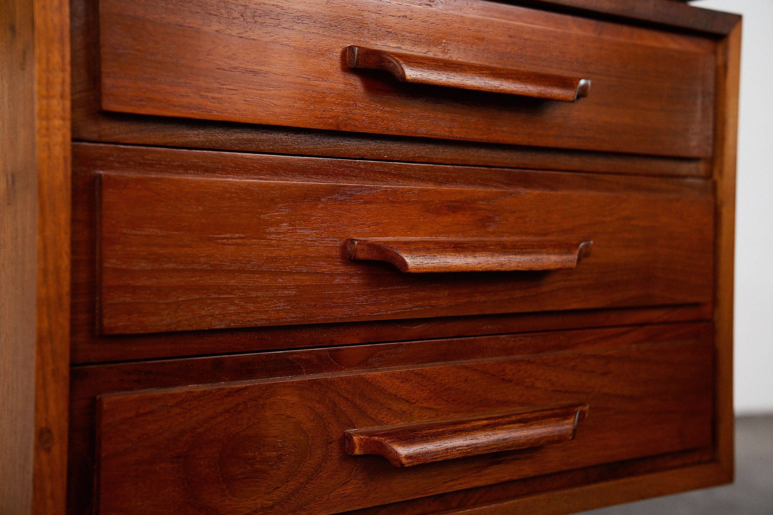 Its Nordic Midcentury aesthetic incorporates a thoughtfully crafted storage system with compartments and filing options. Adorned with elegant curved Danish-styled drawer handles, it embodies the perfect fusion of form and function, elevating your organizational capabilities.