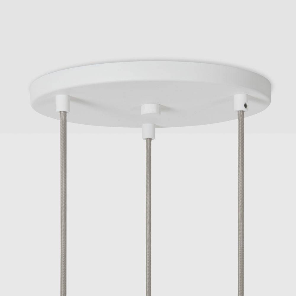 The Tala Alumina Triple Pendant with Canopy is a modern, minimalist lighting solution perfect for contemporary interiors. This stylish fixture features three sleek pendants suspended from a circular ceiling canopy, all crafted with a textured chalk-white powder-coat finish for a cohesive look.