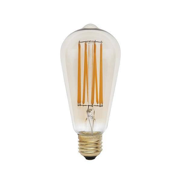 Classic design meets modern LED technology in the Tala Squirrel Cage Bulb. This iconic pear-shaped bulb features a distinctive tinted finish and dimpled dome, inspired by early 20th-century designs. Perfect for exposed pendant lighting, this 3W LED bulb showcases eight golden sapphire filaments within a traditional blown-glass form.
